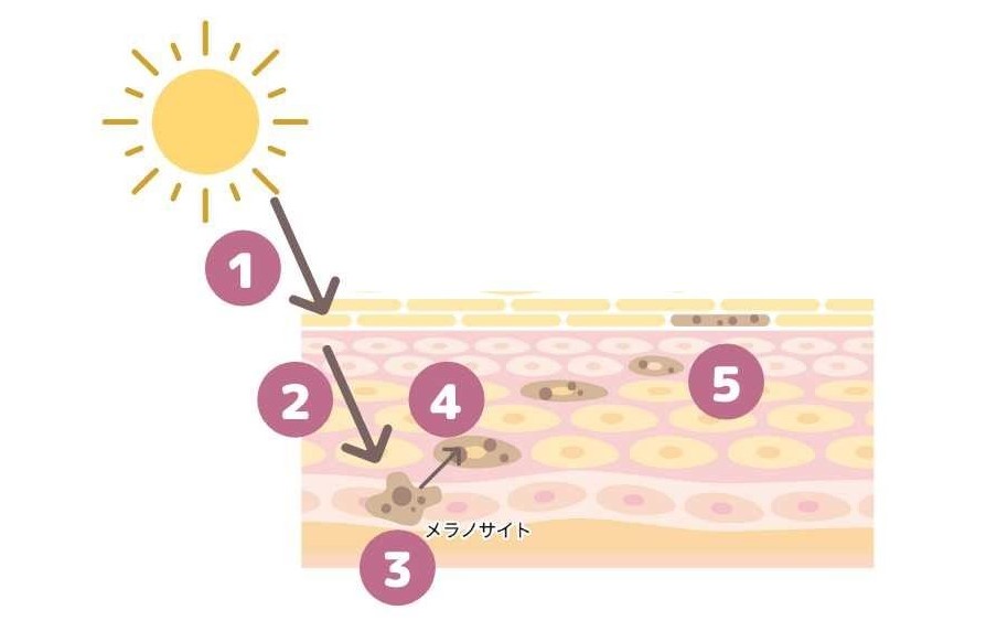 紫外線を浴びてからシミが出来るまでには以下のような工程があります。